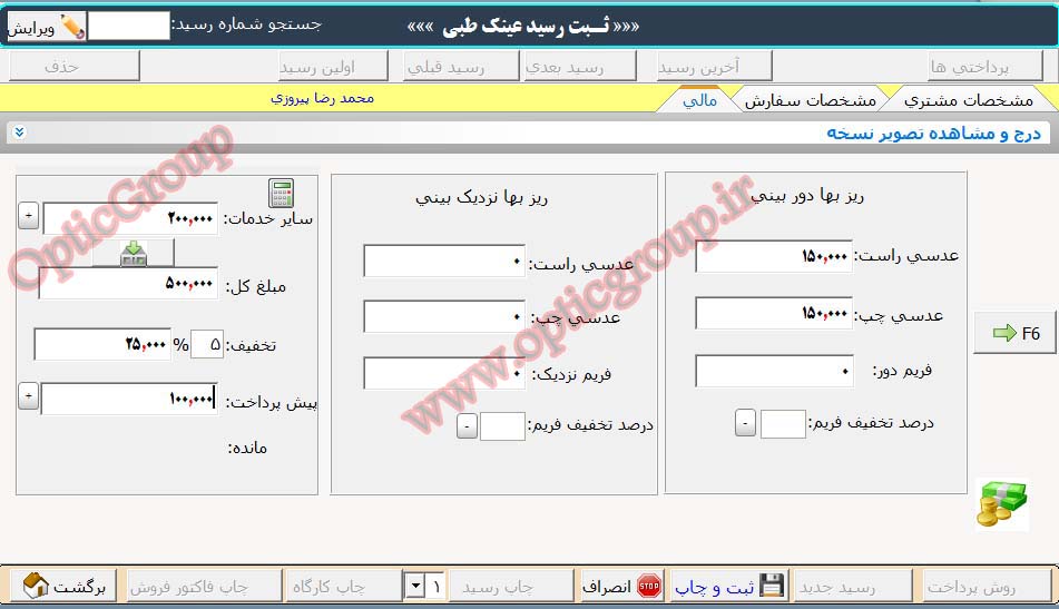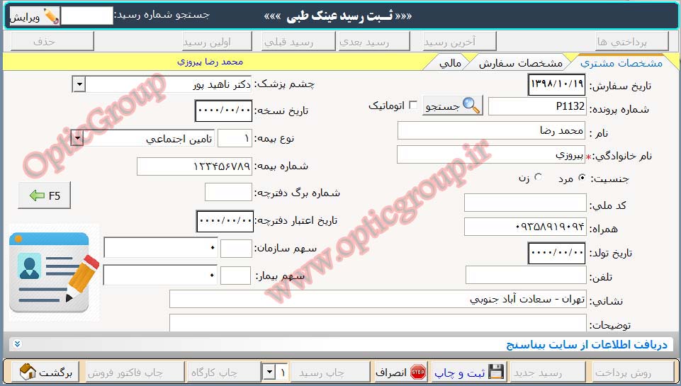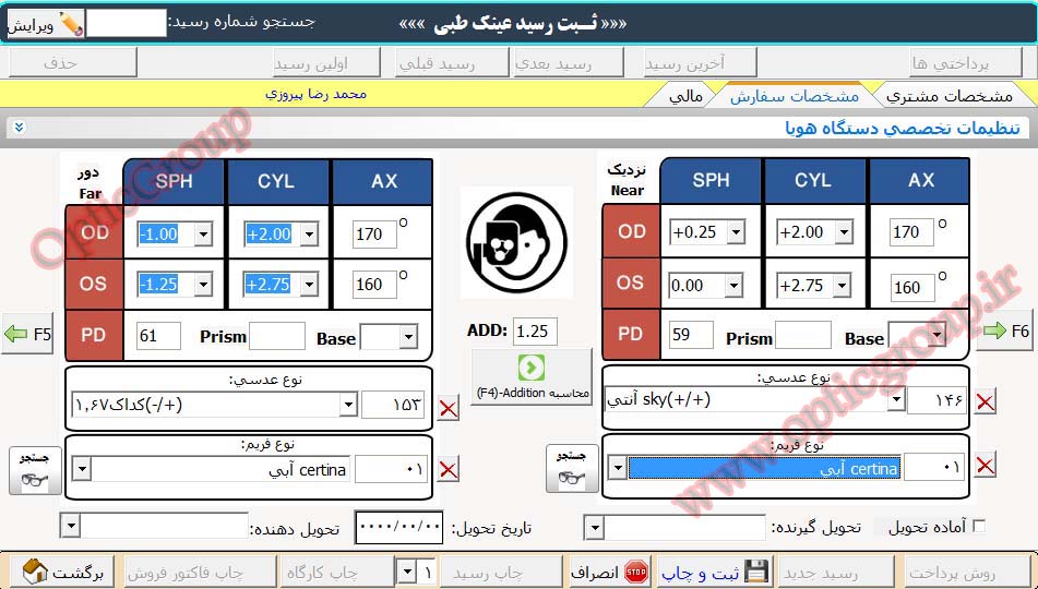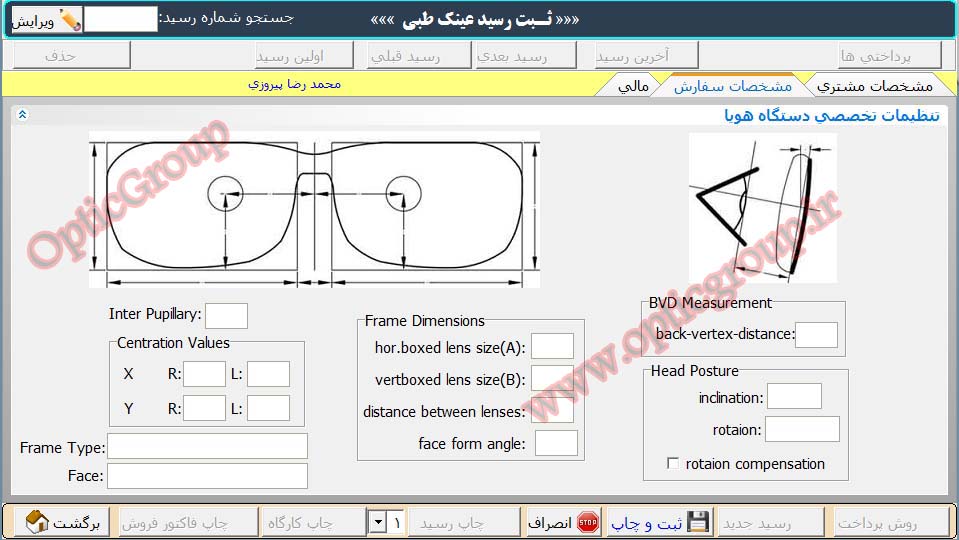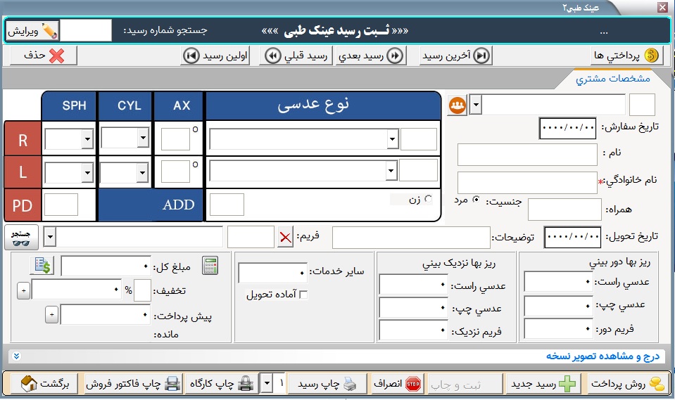 - ثبت فاکتور عینک آفتابی و طبی با تمام مشخصات