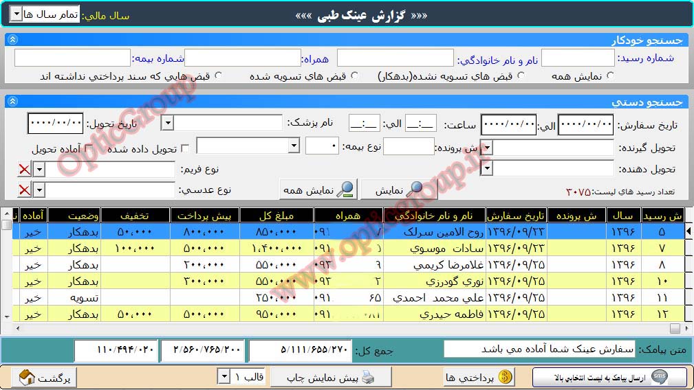 نرم افزار حسابداری عینک فروشی ویژگیهای محصول- حسابداری تخصصی ویژه عینک فروش طبی و آفتابی